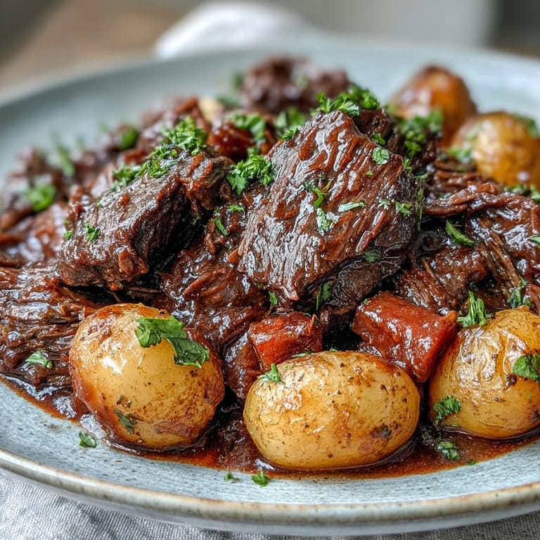 Pin It The scent of browning beef hitting a hot pan is one of those smells that stops everyone in their tracks. I was hosting a Sunday dinner and decided to try pot roast for the first time, convinced I'd ruin it. Three hours later, the meat was so tender it pulled apart with a fork, and my kitchen smelled like a cozy French bistro. Everyone went quiet when they tasted it, then someone said, Pass the potatoes, and we all laughed because we knew this was going to be a regular thing.
