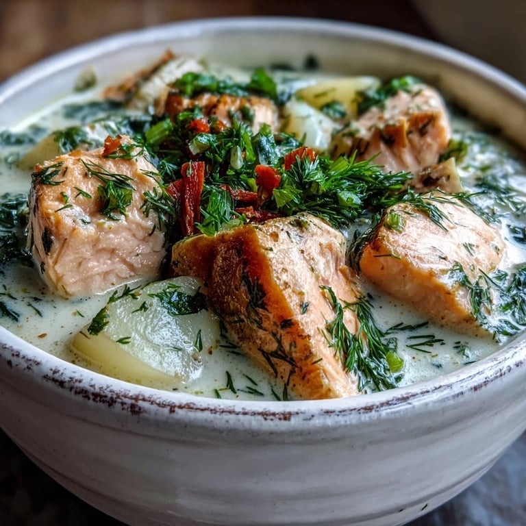 Pin It The aroma of Finnish salmon soup carries me back to a tiny waterfront cafe in Helsinki, where snowflakes drifted past steamed windows as I first tasted this velvety comfort in a bowl. The chef noticed my empty bowl and shared his family recipe, scribbled on parchment paper, with measurements in units I barely understood. Back home, after several attempts and countless adjustments, I finally captured that perfect balance of creamy broth, tender salmon, and the distinctive brightness of fresh dill.