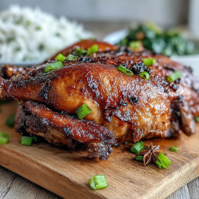 I made this for Valentine's Day once, mostly because I wanted to try something that felt special without being predictable. My partner walked in during the final roast, when the skin was just starting to crackle and turn that deep mahogany, and the look on their face made me realize I'd accidentally created a new tradition. We ate by candlelight with jasmine rice and too much wine, tearing into the crispy skin with our fingers like nobody was watching. Some recipes earn their place not because they're easy, but because they turn an ordinary evening into a memory you keep replaying.