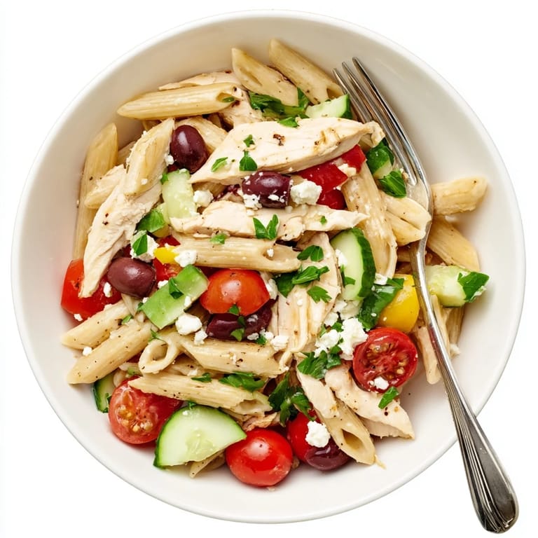 Absolutely. Omit the chicken and add chickpeas, white beans, or crispy tofu for protein. Replace feta with dairy-free feta alternative or skip it entirely. The vegetables, olives, and dressing create a satisfying vegetarian base that's flavorful on its own.
