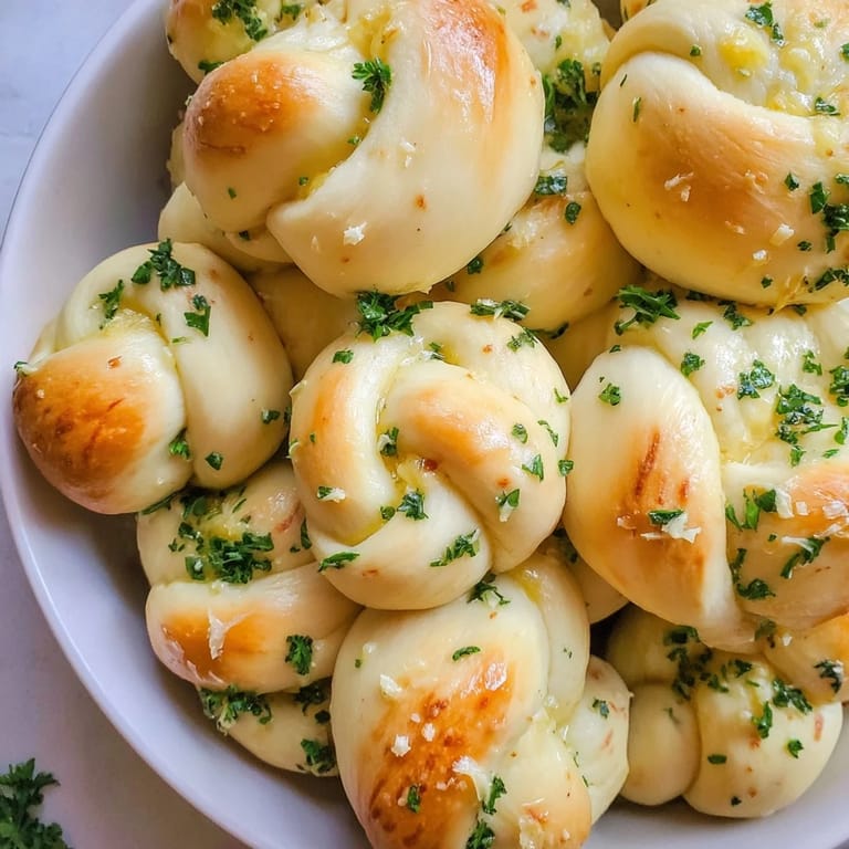 Pin It Soft, fluffy knots of dough brushed with aromatic garlic butter—perfect as a quick snack or appetizer for any occasion.