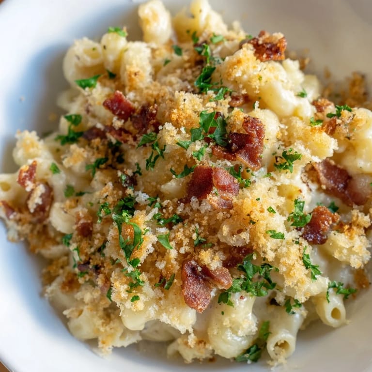 Pin It I wasn't planning on making mac and cheese that night, but my cousin Tini called and said she was bringing people over in two hours. I had bacon in the fridge and a block of cheddar that needed using, so I threw together what I thought would be a basic comfort dish. When I pulled it out of the oven with that bacon crackling on top, everyone went silent for a second, then someone said it tasted like a hug with a crunch. That's when I knew this wasn't just another mac and cheese.