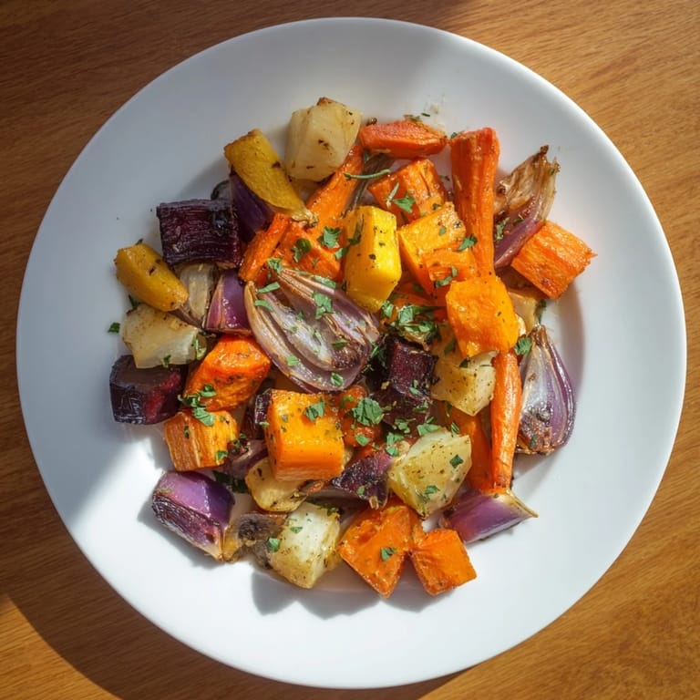 Pin It Enjoy the comforting flavors of a vibrant, oven-roasted assortment of root vegetables, perfectly finished with a tangy-sweet balsamic glaze. This dish shines as a hearty side or a satisfying vegetarian main, bringing color and warmth to your table with minimal effort.
