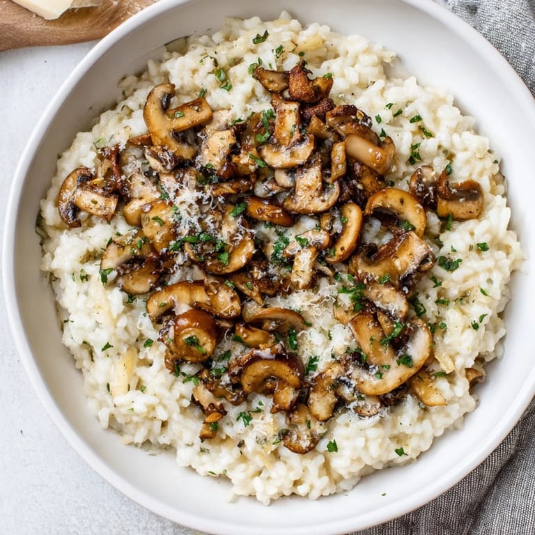 For a vegan version, substitute unsalted butter with plant-based butter and use vegan Parmesan or nutritional yeast for a cheesy touch. Mushroom risotto can be made richer by combining mushrooms and Parmesan. Enhance flavor with an optional splash of truffle oil before serving.